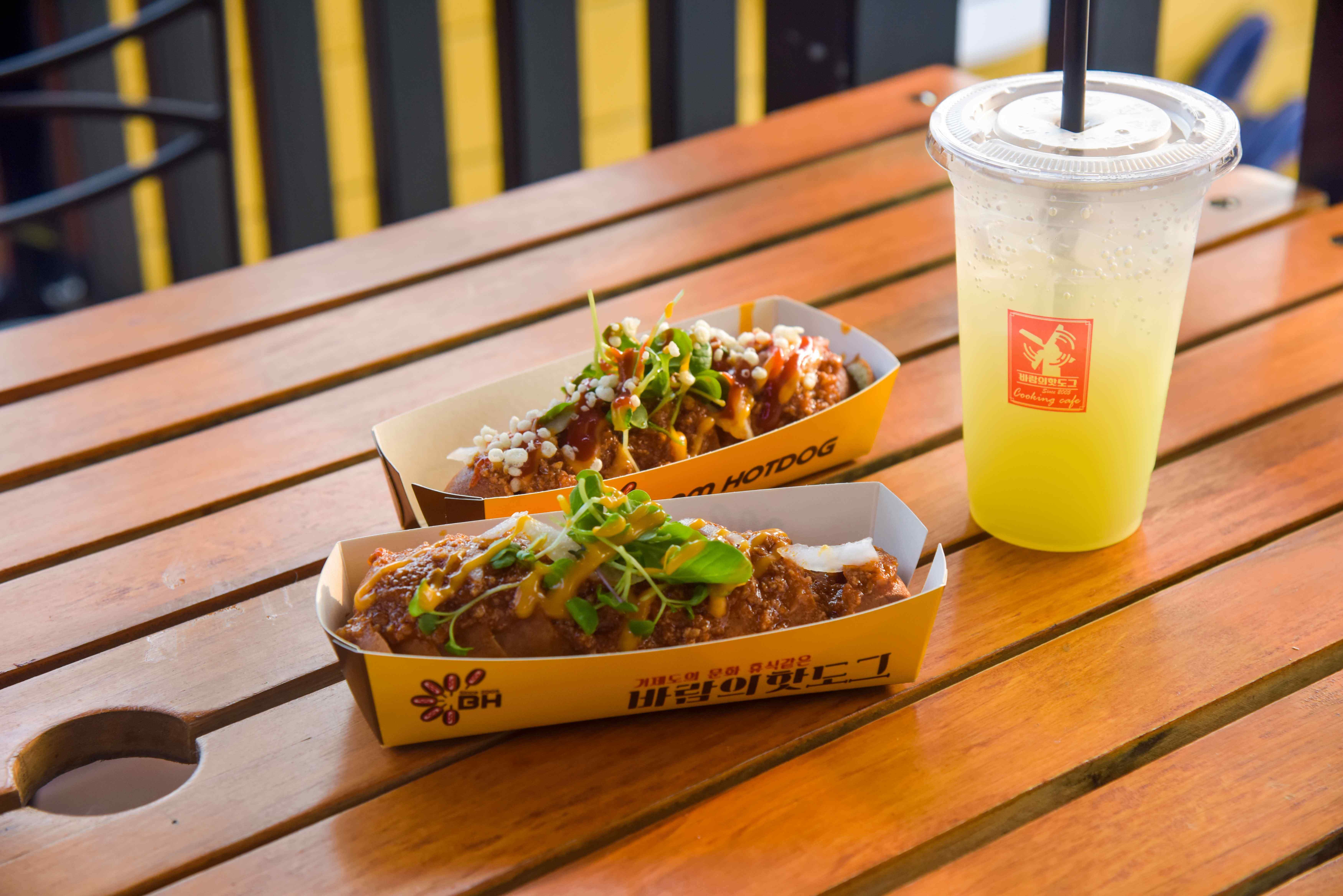 특히 주말이나 공휴일에는 대기줄이 필수일 정도로 핫한 맛집으로 알려져 있습니다. 바람의언덕을 방문하면 자연스럽게 이 핫도그 가게 앞에서 멈추게 될 만큼, 현장의 분위기와 함께 그 인지도가 높습니다.