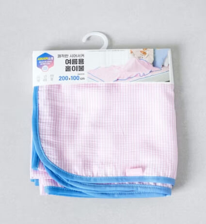 여름밤마다 더워서 이불을 걷어찼던 분들 주목! 시어서커(Seersucker)는 여름 대표 원단으로, 피부에 달라붙지 않아 땀 차단 효과가 탁월합니다. 다이소에서는 5,000원대의 초가성비 시어서커 이불을 판매 중인데요, 분홍색과 하늘색 두 가지 컬러로 구성되어 시각적 만족도도 높습니다.